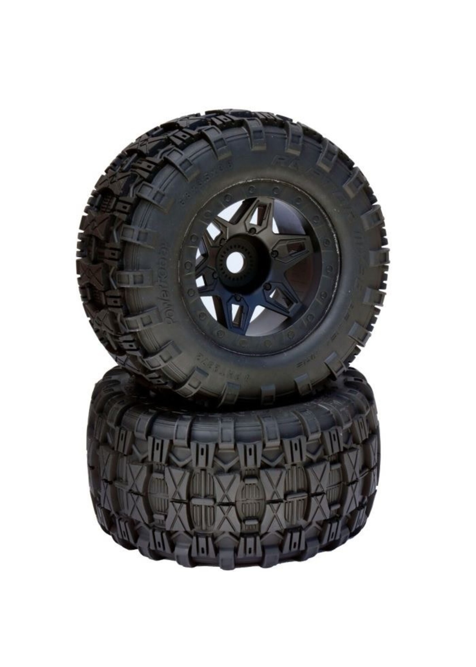Powerhobby 1/8 Raptor 3.8” Belted All Terrain Tires 17MM Mounted Black These 3.8" tires really deliver on traction with a bigger and bolder knobby tread.
