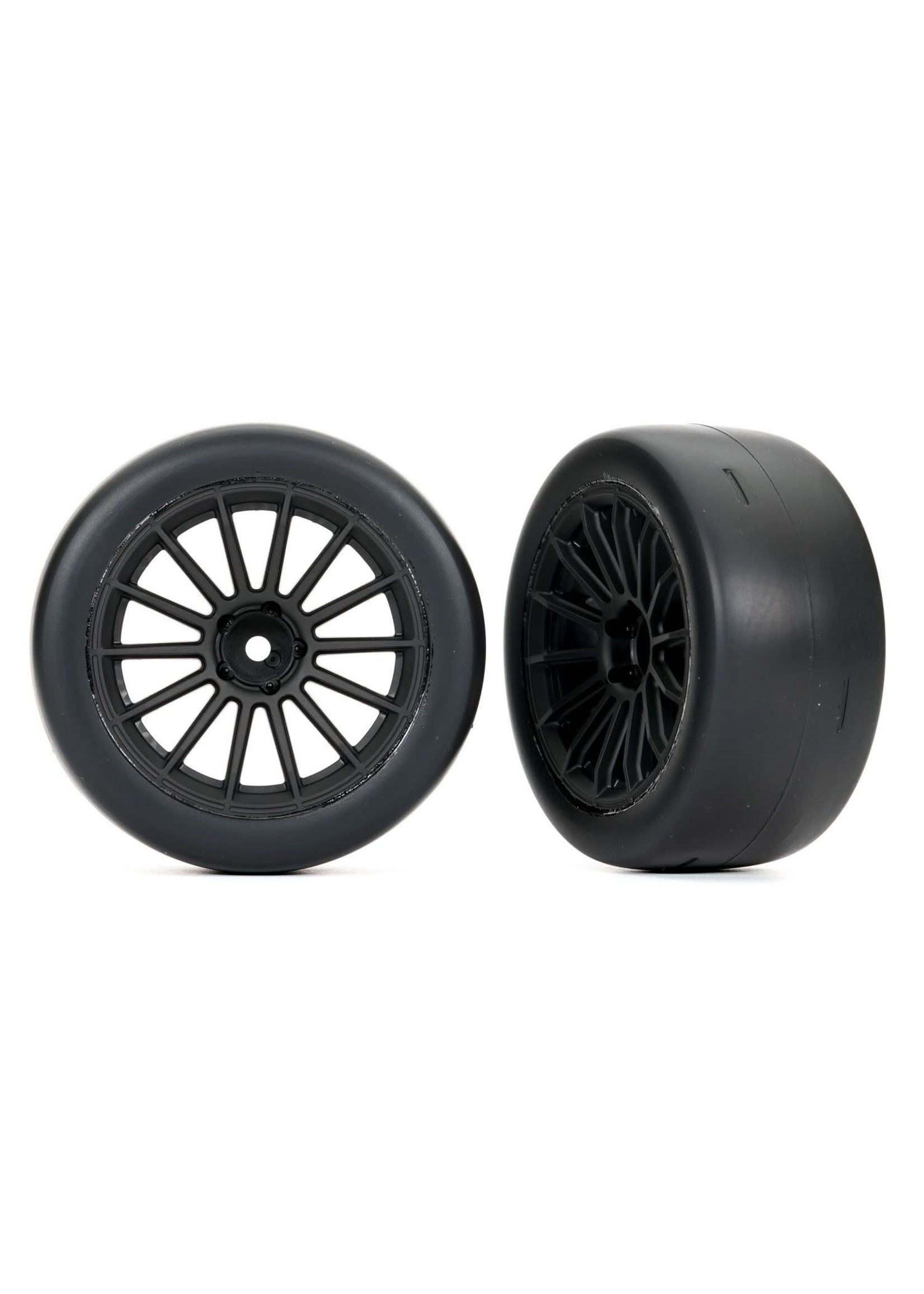 • Traxxas Tires & wheels, assembled, glued (multi-spoke black wheels, 2.0" slick tires, foam inserts) (rear) (2)
