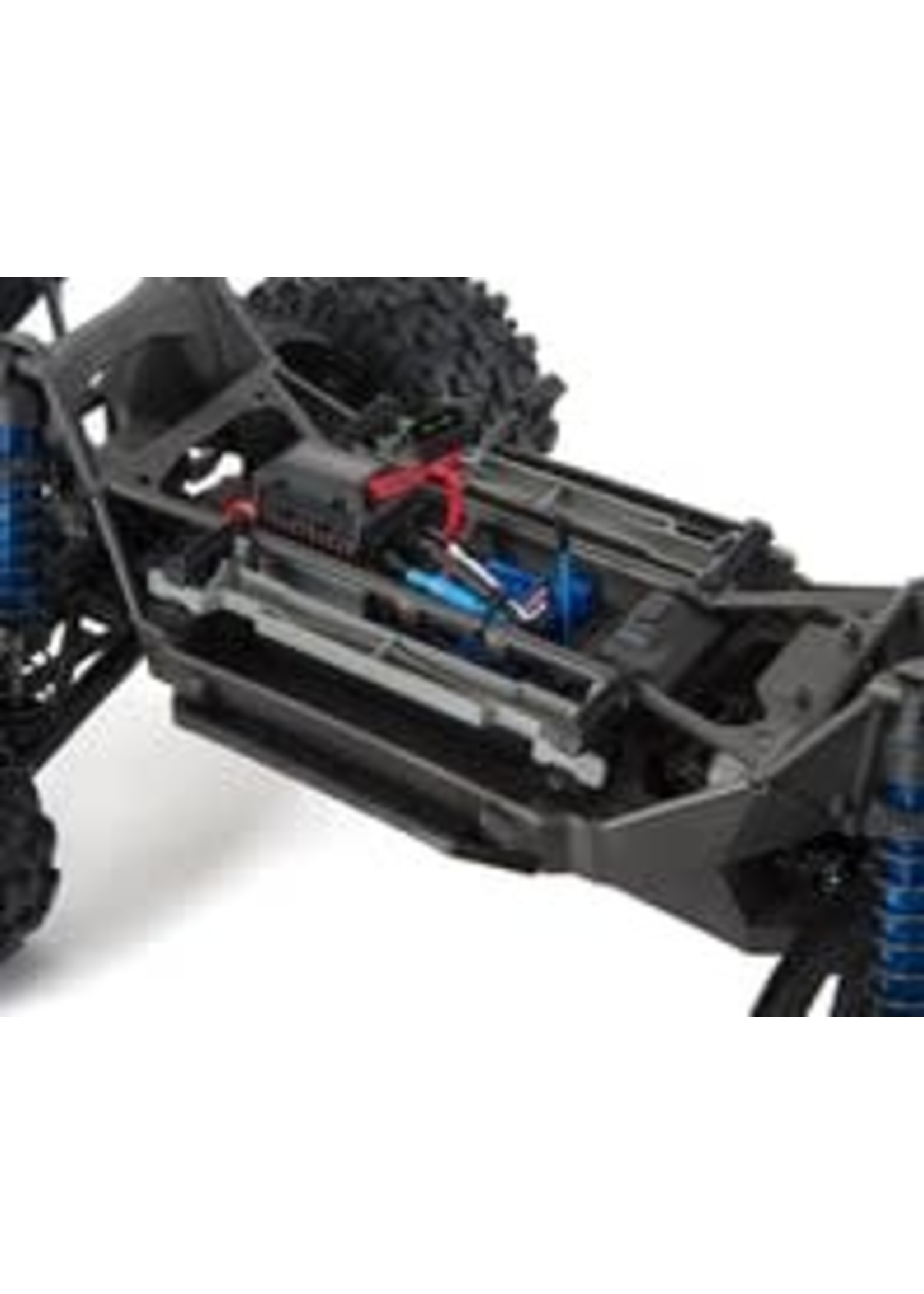 Chassis: Composite nylon tub, modular design provides easy access to critical components, lower front and rear skids and integrated nerf bars for front, rear and side impact protection, rear wheelie bar Drive Four wheel shaft drive, Max Duty drivetrain with new high-strength precision steel gears, new ring and pinions use a larger module and special alloys, new impact absorbing Cush Drive handles massive torque and replaces the slipper clutch new Torque-Biasing Center Drive with cast alloy construction is tuned for instant punch off the line, and improved front and rear power distribution